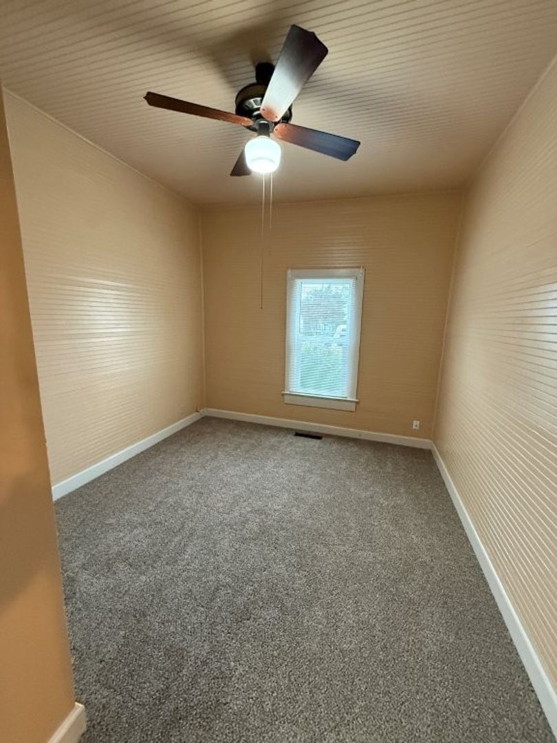 - Living Room Features: New Carpet, New Paint, Modern Ceiling Fan, Wall Shelves, Dual Pane Window w/ New Blind