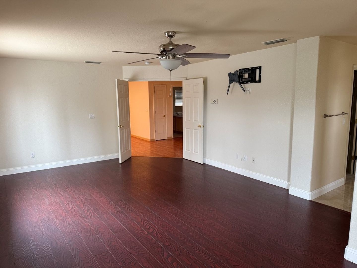 - Large Master Bedroom Features: Vinyl Plank Floors, Newer Paint, Dual Pane Windows, Modern Ceiling Fan, TV Mount