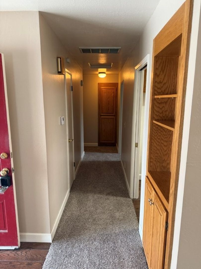 - Hallway Features: Built in Bookshelf/Linen Cabinetry, New Paint, New Carpet and Baseboards