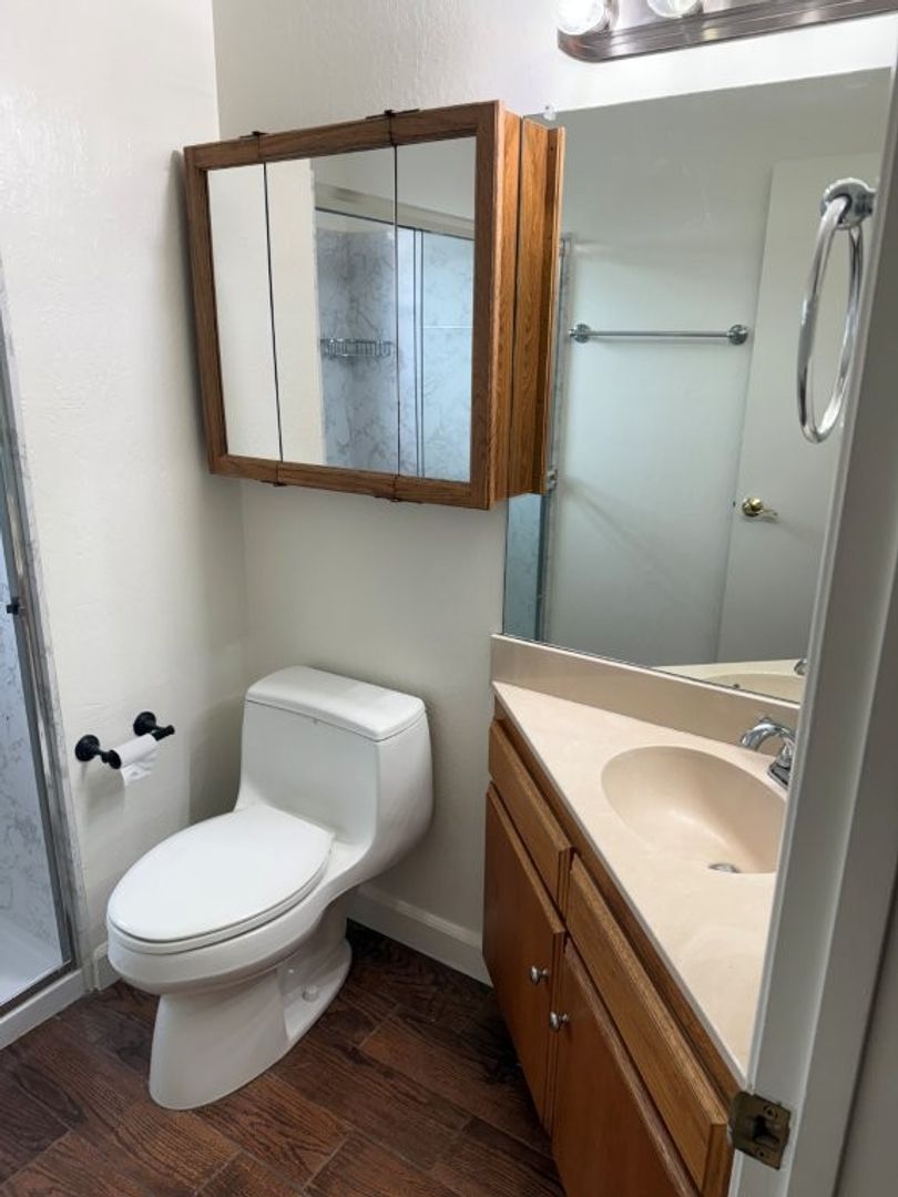 - Master Bath Features: Tile Floors, Corner Vanity w/ New Faucet, New Light Fixture, Newer Toilet, Medicine Cabinet Storage, New Walk-in Shower w/ Glass Doors and Pull Down Sprayer, Frosted Window